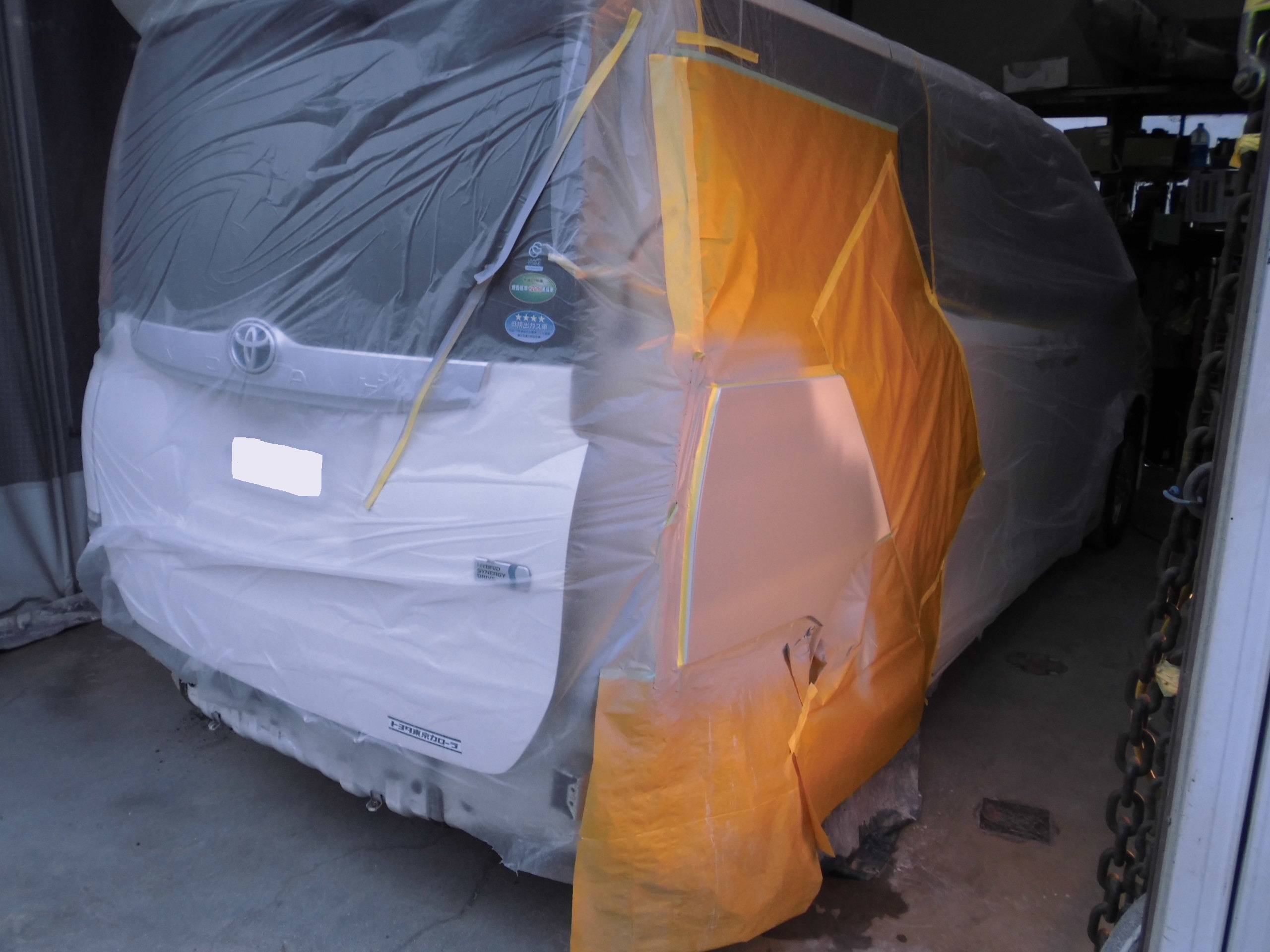 車両保険で右クオータの鈑金とRrバンパ,テールランプの交換です。