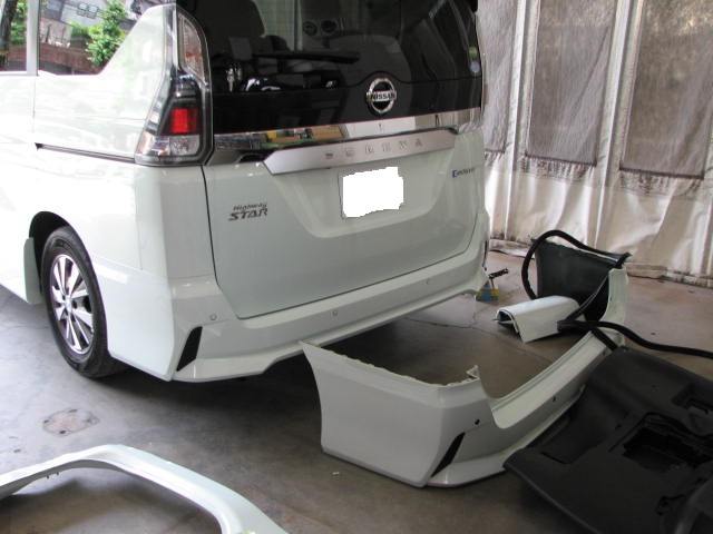 C27 セレナ 車両保険でRr廻りのご修理でご入庫いただきました。