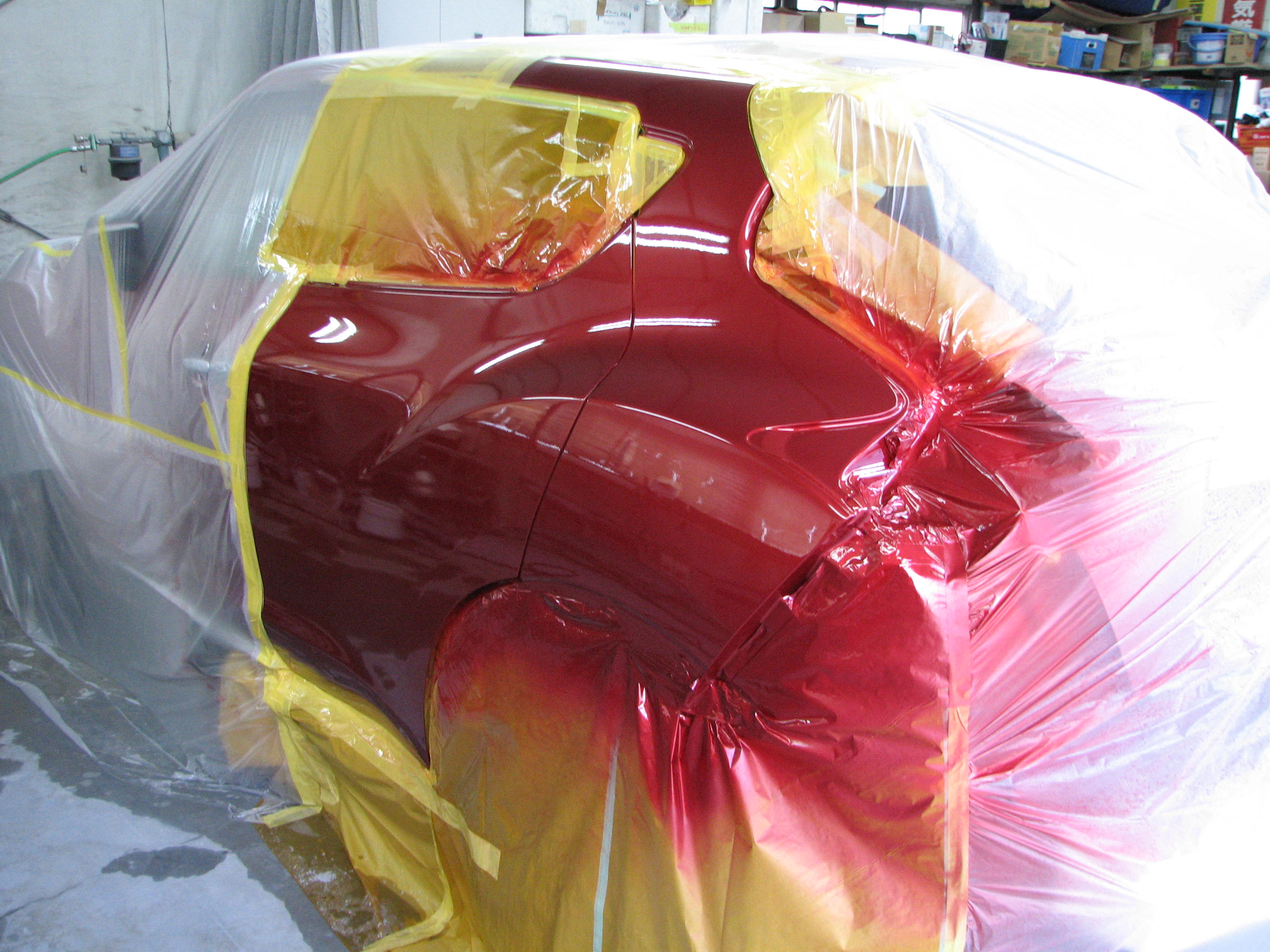 左Rrフェンダの鈑金作業が終わり、塗装したところです。