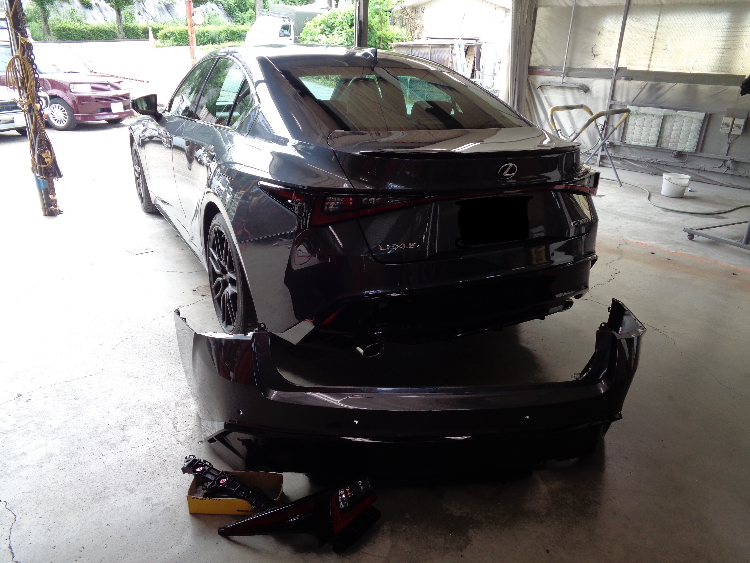 Rrバンパ、左テールランプ、左クオータのご修理でご入庫いただきました。