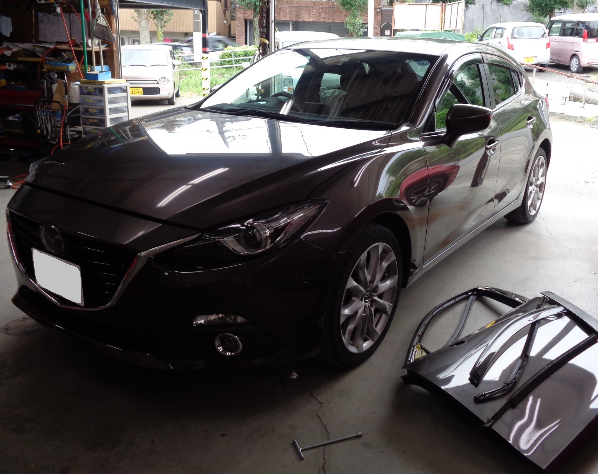BMEFS アクセラ 保険で左Frフェンダー、ドアのご修理です。